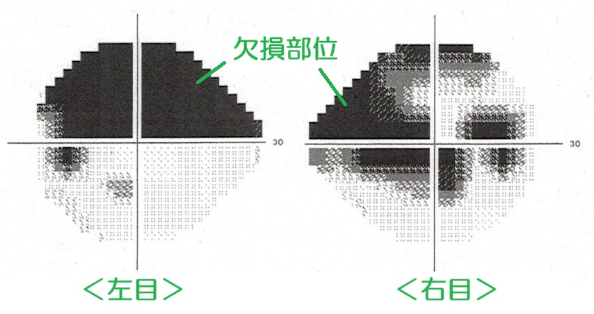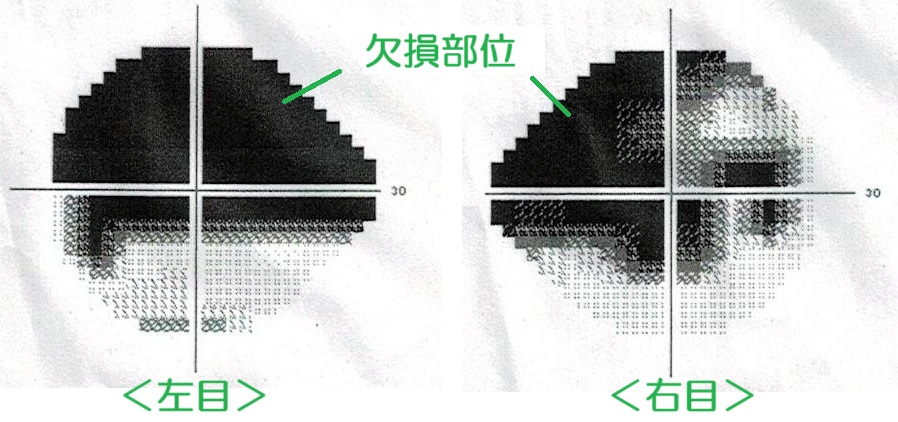 初診の数日前に眼科で行った視野検査の結果を見てみます。